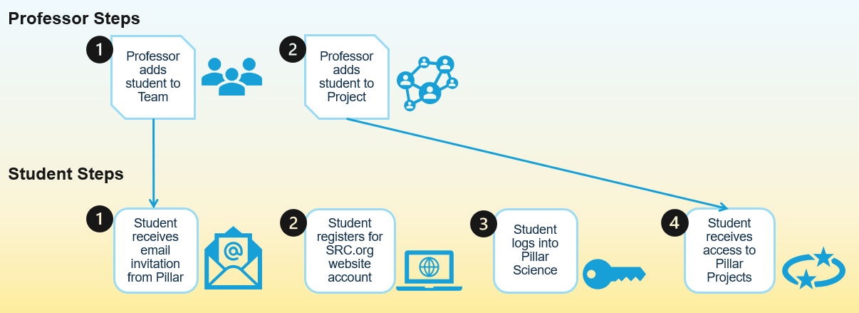 Access to Pillar Science requires an SRC.org website account. Once the Professor has added the student to Pillar, the student will receive an email invitation. Follow the instructions in this invitation.